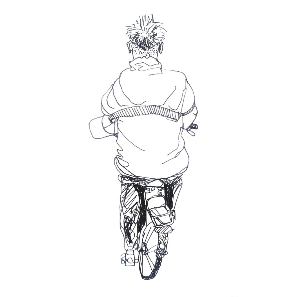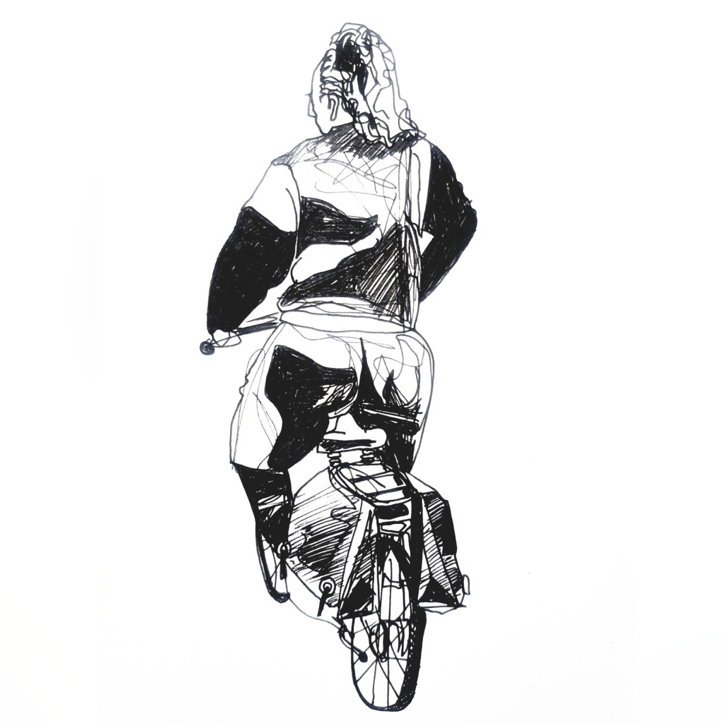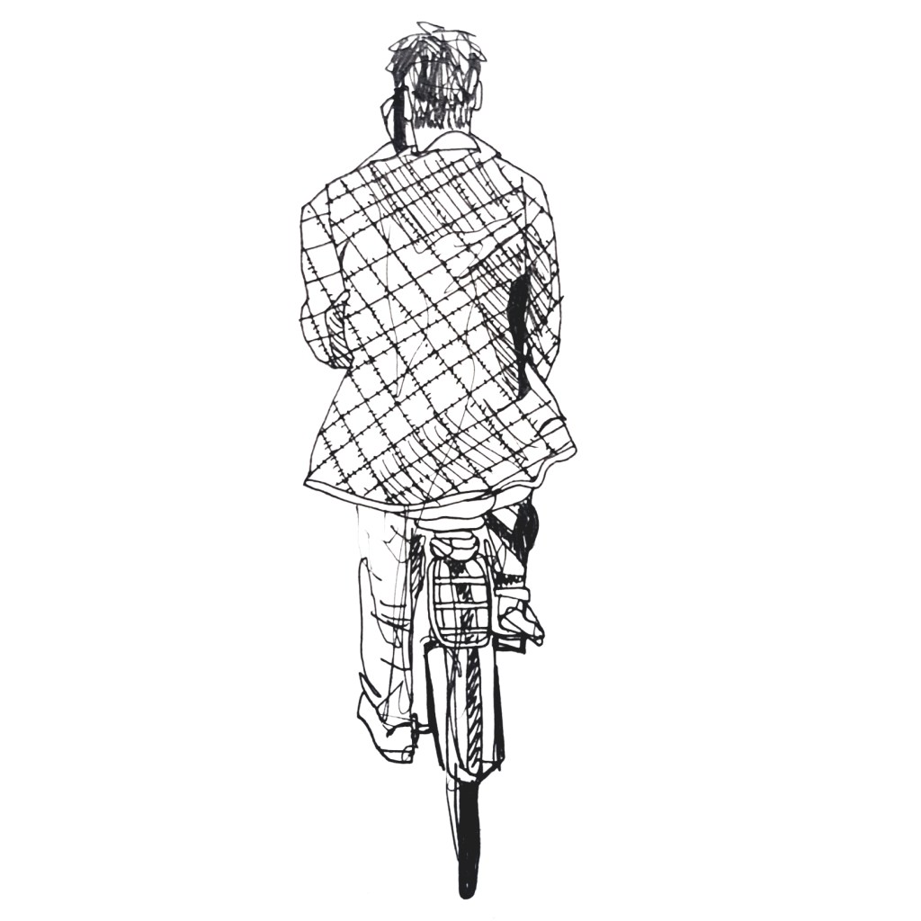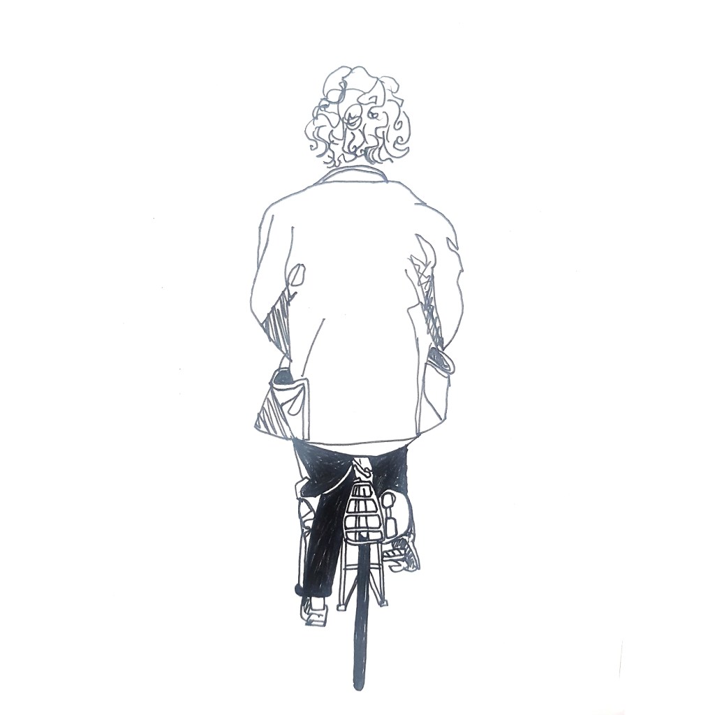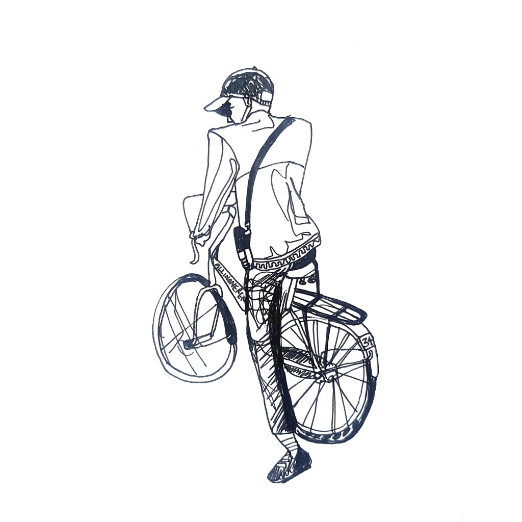 Inspired by various ‘100 days’ projects I had seen online, where people were sharing one drawing each day for 100 days, I decided to take part myself. I thought it would be a great way to get myself drawing each morning before my day started. Armed with a Japanese accordion sketchbook that I was itching to use and my trusty uni-bal eye fineliner, I drew one Amsterdammer and their bicycle each day and shared them on Instagram using the hashtag #100daysofpeopleandtheirbikes Here is a selection of the results: