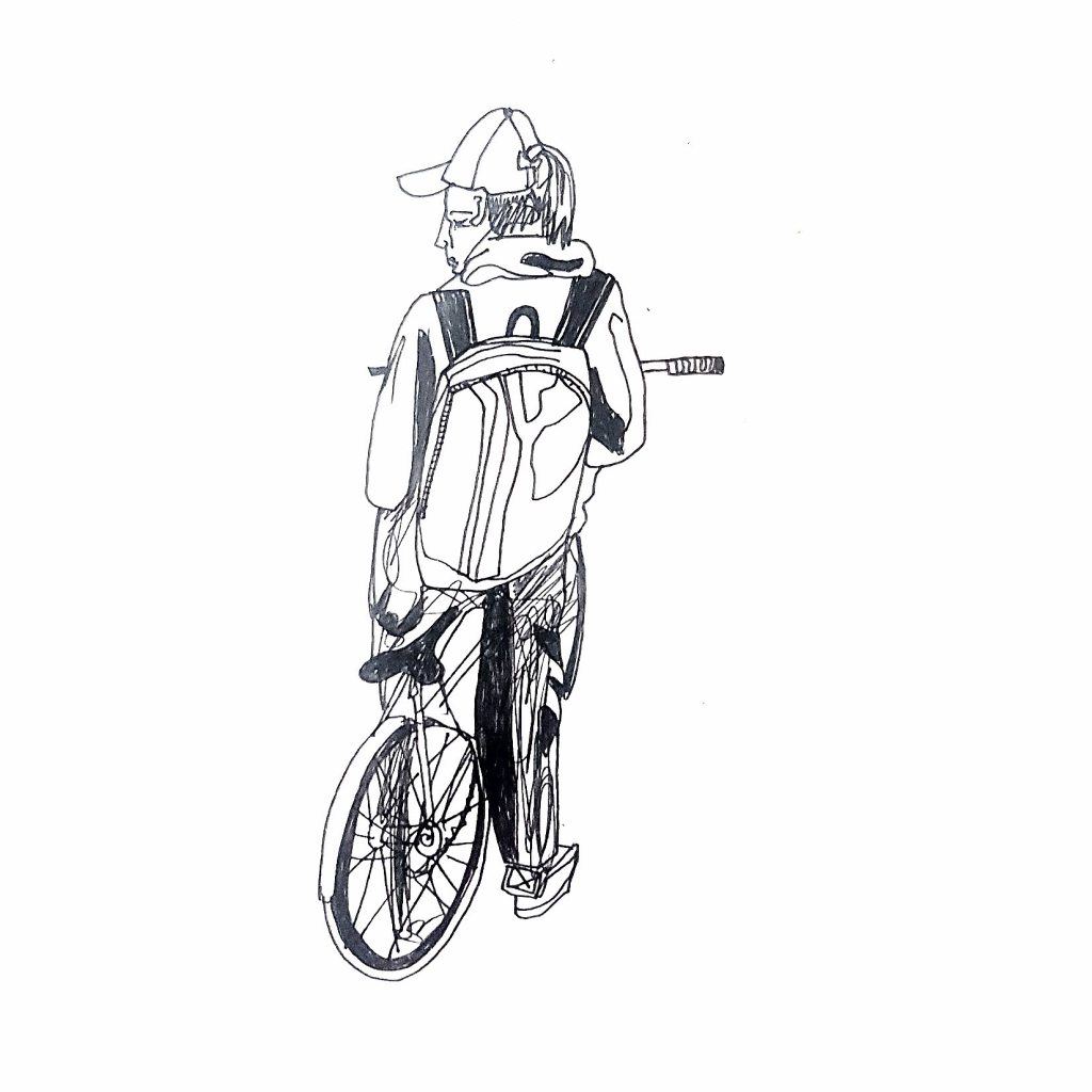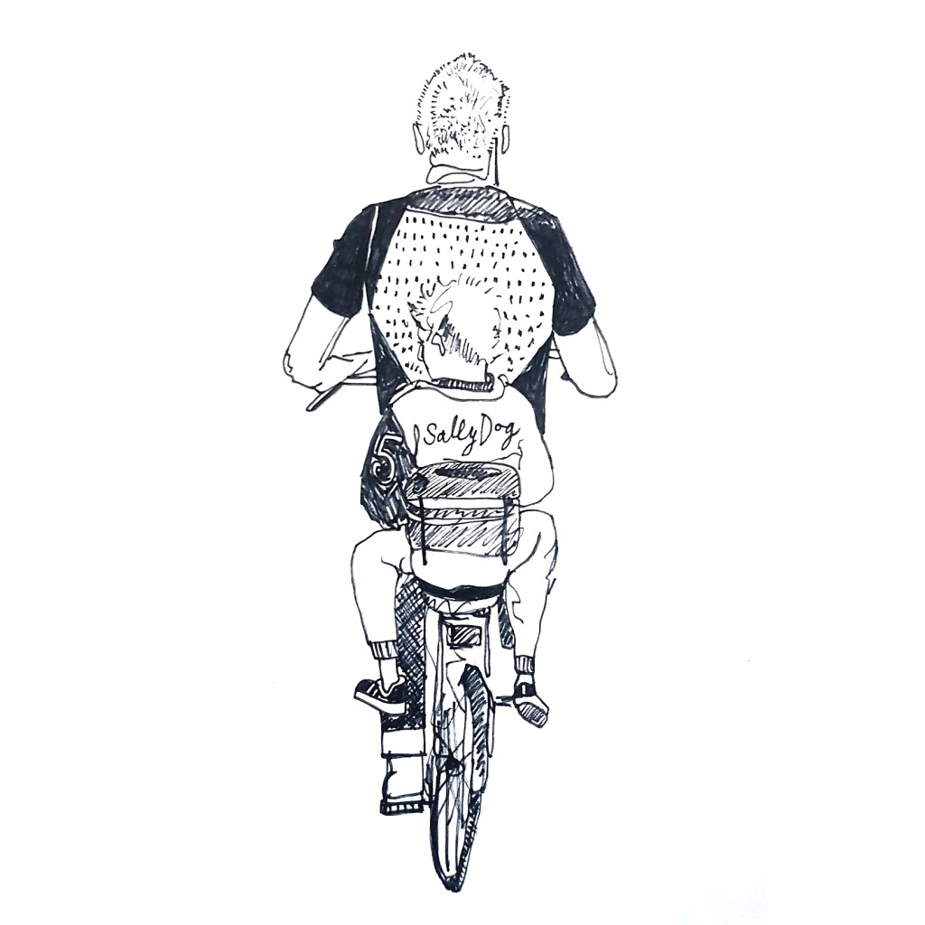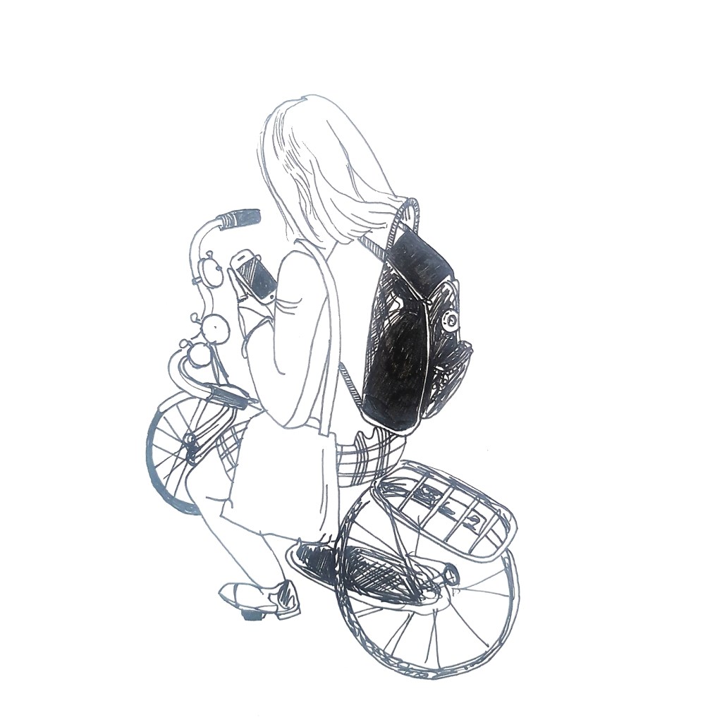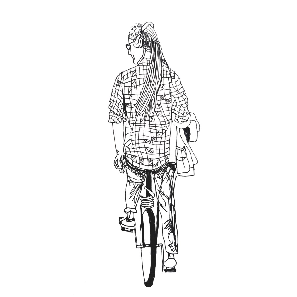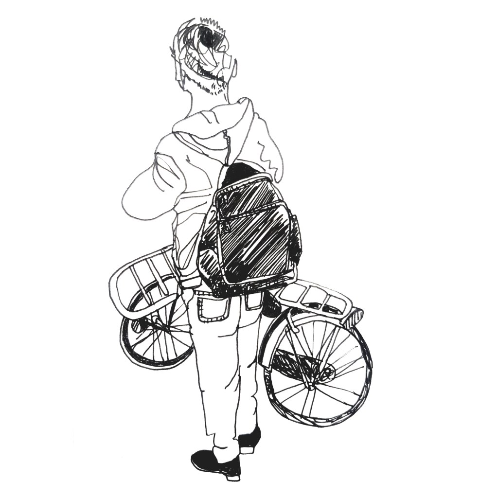 Inspired by various ‘100 days’ projects I had seen online, where people were sharing one drawing each day for 100 days, I decided to take part myself. I thought it would be a great way to get myself drawing each morning before my day started. Armed with a Japanese accordion sketchbook that I was itching to use and my trusty uni-bal eye fineliner, I drew one Amsterdammer and their bicycle each day and shared them on Instagram using the hashtag #100daysofpeopleandtheirbikes Here is a selection of the results: