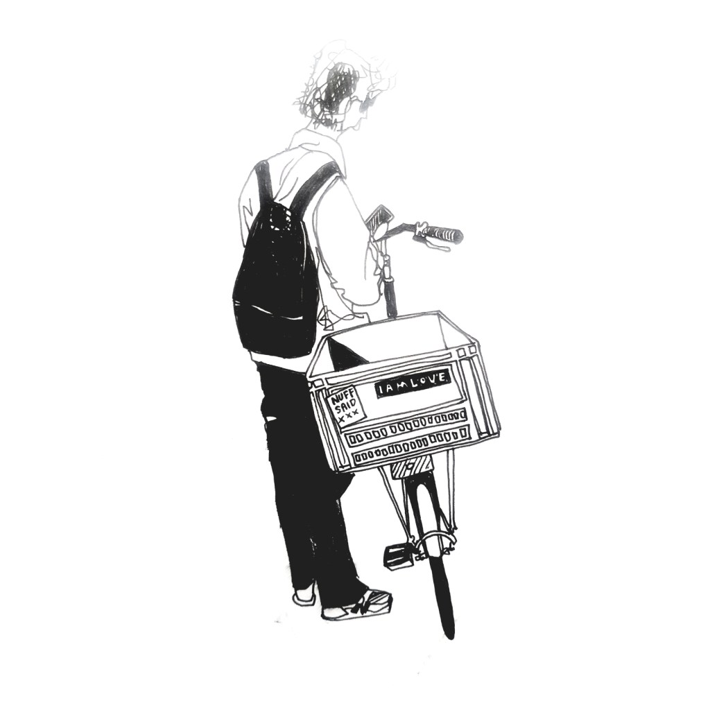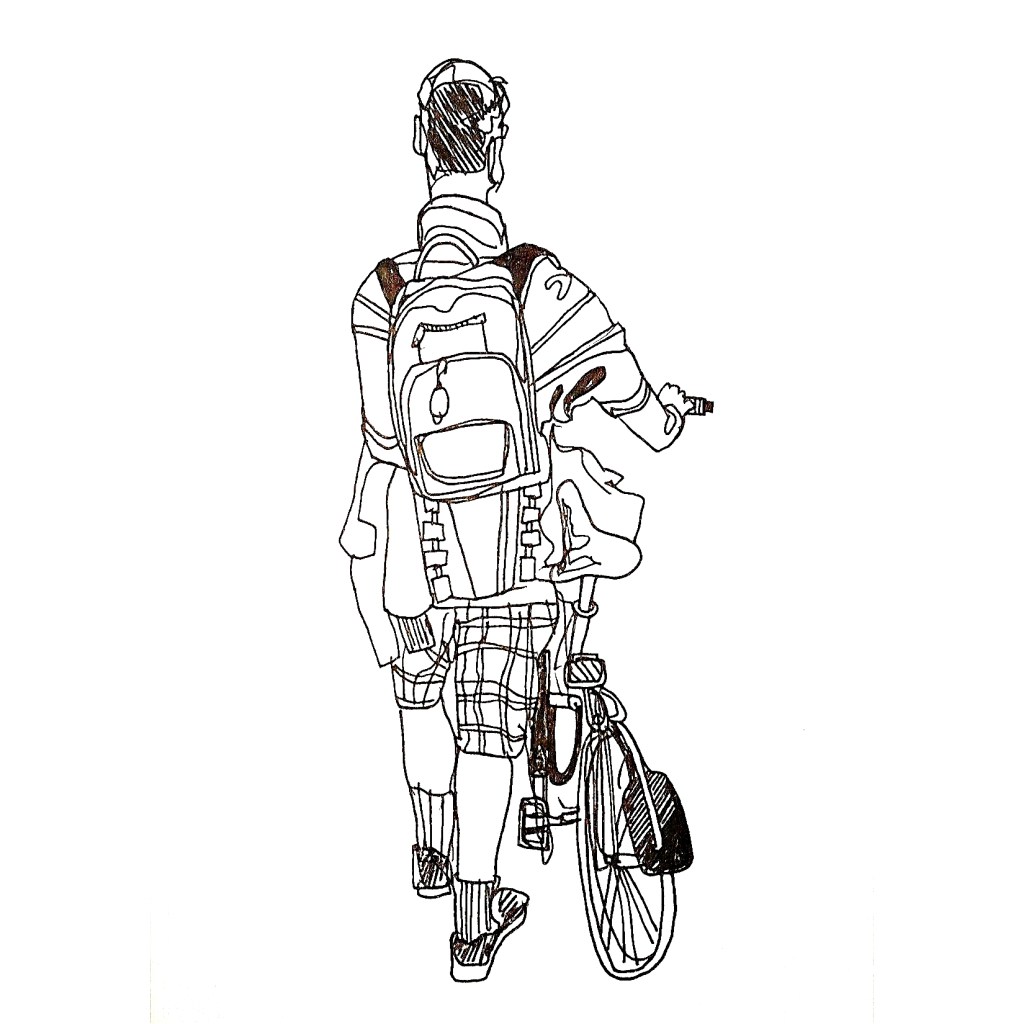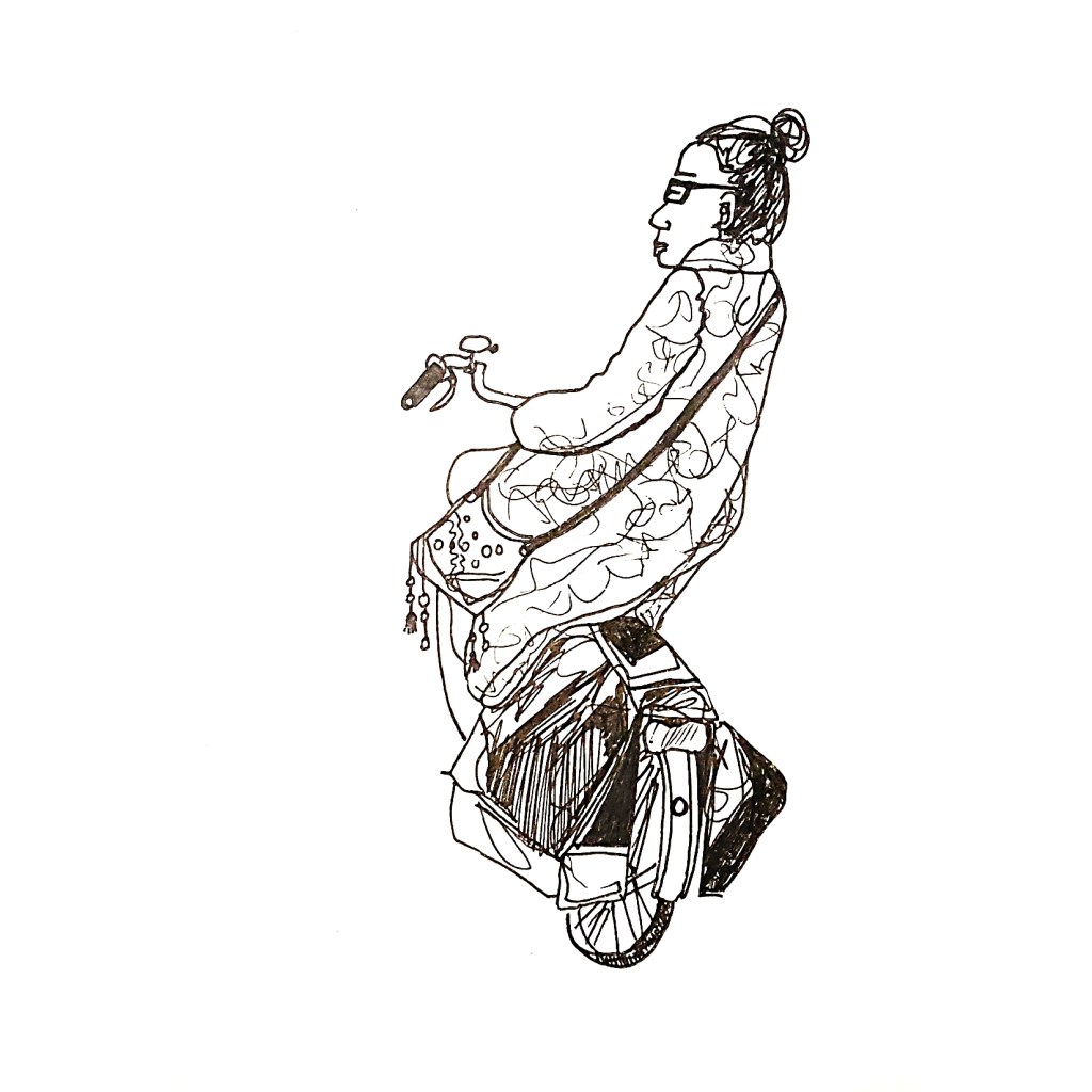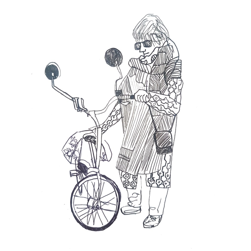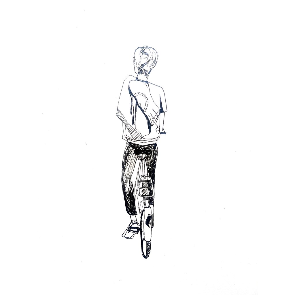 Inspired by various ‘100 days’ projects I had seen online, where people were sharing one drawing each day for 100 days, I decided to take part myself. I thought it would be a great way to get myself drawing each morning before my day started. Armed with a Japanese accordion sketchbook that I was itching to use and my trusty uni-bal eye fineliner, I drew one Amsterdammer and their bicycle each day and shared them on Instagram using the hashtag #100daysofpeopleandtheirbikes Here is a selection of the results: